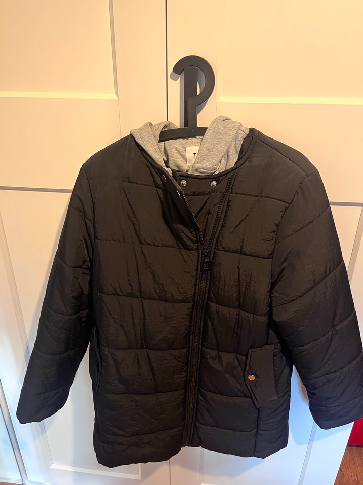 Fermuarlı, siyah, uzun kollu, rahat kesim kadın midi ceket. Yumuşak fleece kumaştan üretilmiştir ve günlük kullanıma uygundur.