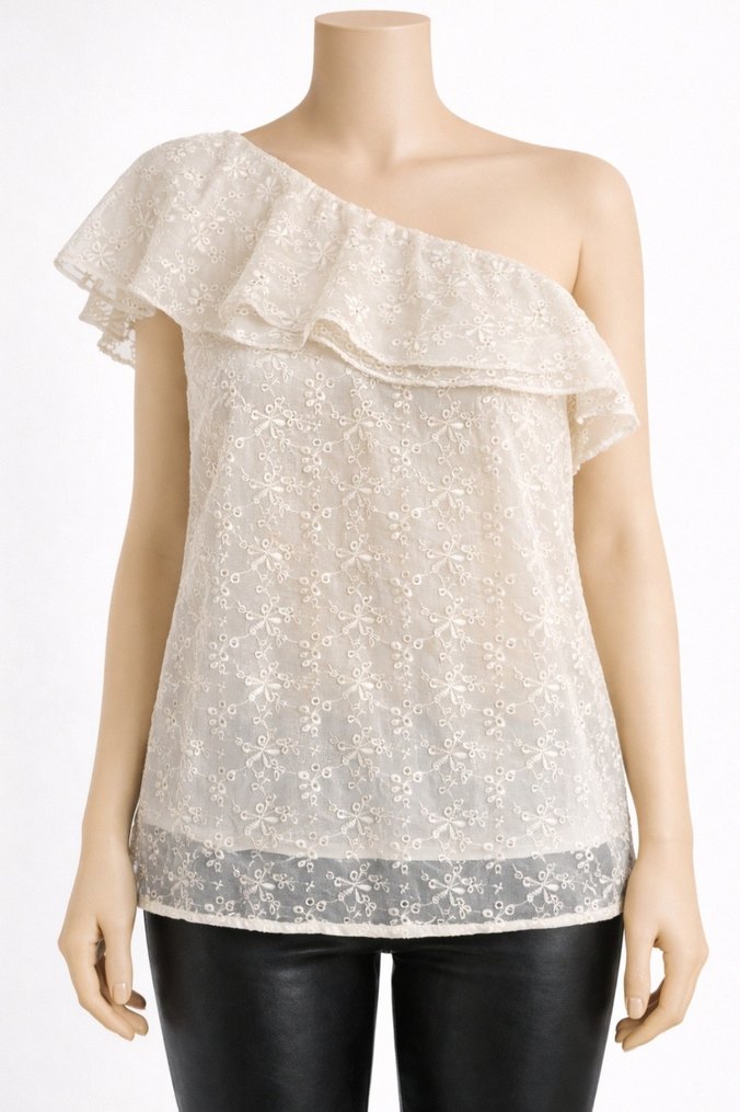 Ekru renk tek kol güpür bluz astarlıdır yandan fermuarlı S beden kol altı mesafesi 45 cm boyu 66 cm