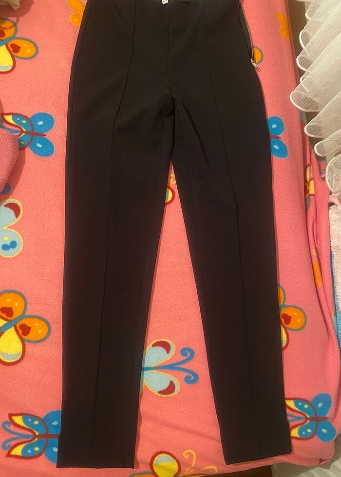 Beli gizli lastikli yandan fermuarlı paçası ufak yırtmaçlı pantolon önden ve arkadan dikişli. Esnektir