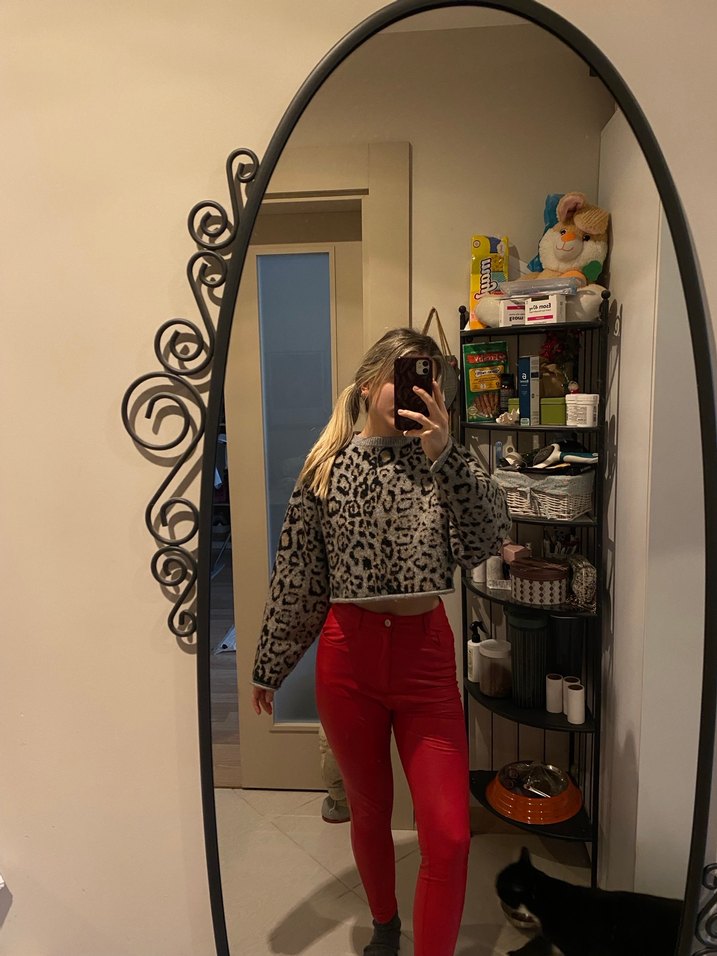 Twist kırmızı deri pantalon