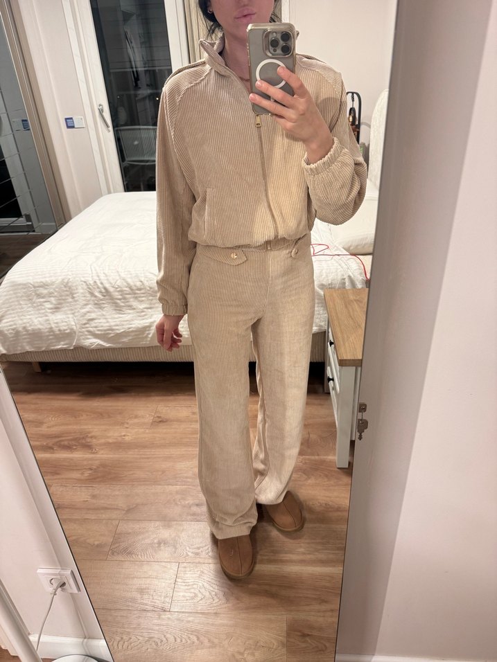 Twist marka orjinaldir etiketsiz ama hiç kullanılmadı sorunsuzdur kadife krem üst salas kalıp kemer crop arasındadır Alt tayt pantolon bel kısmı detaylı ( aynı detay ceket kısmındada vardır) tam kalıptır s beden 170.56 kıloda durusu koyuldu 58 kilo üstü için dar kalır pantolon boyu 170 bile uzundur kestırmek gerekebilir