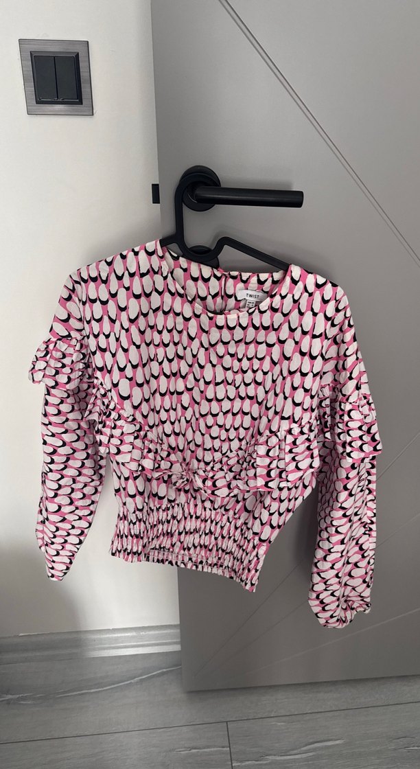 Twist Pembe Pilili Uzun Kollu Mini Bluz