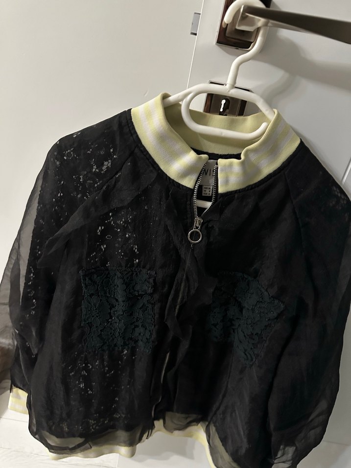 Twist Siyah Dantel Detaylı Mini Ceket