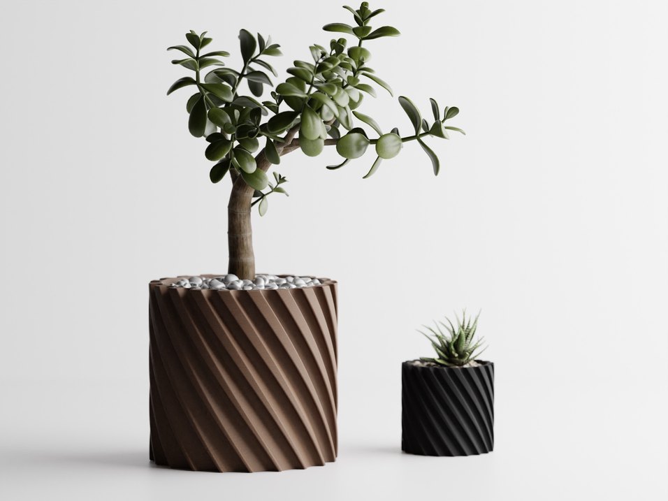 Bu dekoratif saksı modeli, modern tasarım anlayışıyla hazırlanmış olup 3D baskı teknolojisi kullanılarak üretilmektedir. Ürün, katmanlı üretim yöntemi sayesinde hem hafif hem de dayanıklı bir yapıya sahiptir. Her bir parça, titizlikle işlenen özel bir üretim sürecinden geçer ve tamamen el yapımı olarak üretilir. Kullanılan malzeme yüksek kaliteli PLA biyoplastiktir. Bu materyal %100 biyobozunur, doğa dostu ve çevreci bir ham madde olduğu için hem sağlıklı hem de sürdürülebilir bir kullanım sunar. Bu da ürünü çevreci yaşam tarzını benimseyen kullanıcılar için ideal hale getirir. 3D baskıya özgü yüzey dokusu, ürünün karakteristik el işçiliğini yansıtır ve modern bir görünüm kazandırır. Bu saksı gerçek bitki için uygun değildir; toprak ve su ile kullanım önerilmez. En ideal kullanım yapay çiçekler, kuru dallar ve dekoratif objelerledir. Minimal ve modern çizgisi ile; salon, ofis, masaüstü, giriş holü, mağaza dekoru gibi birçok alana estetik bir dokunuş katmak için tasarlanmıştır