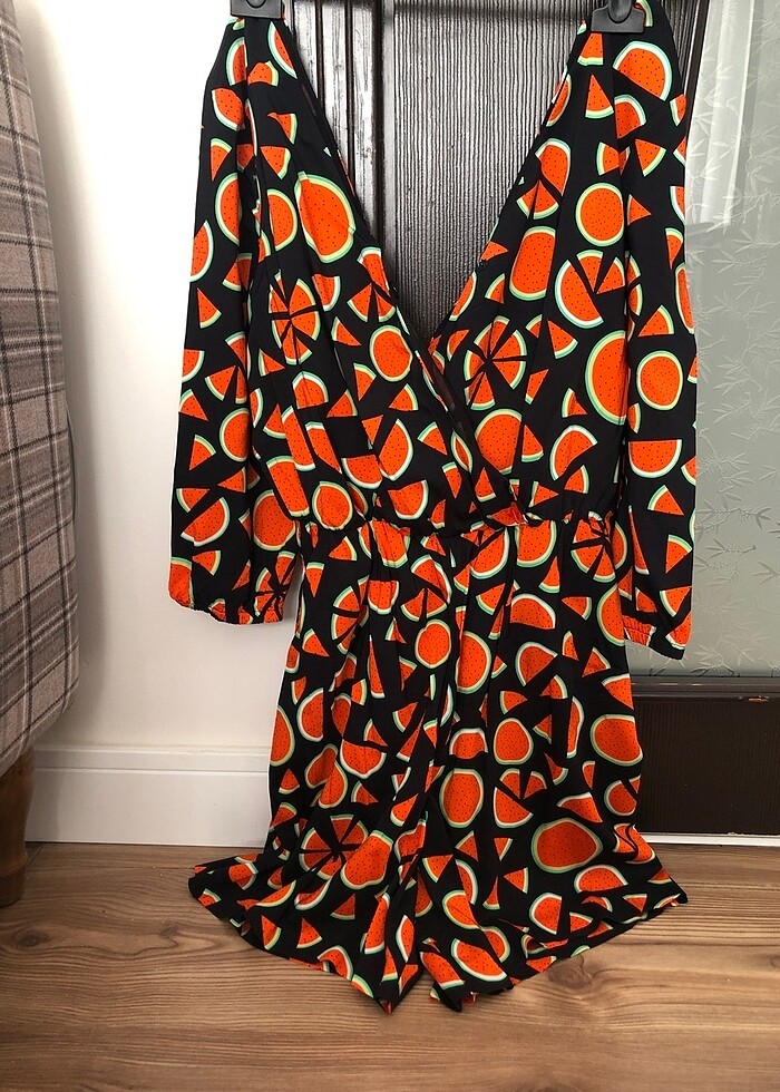 Esnek kumaşlı, bel kısmı lastikli sırtı fiyonklu mini tulum