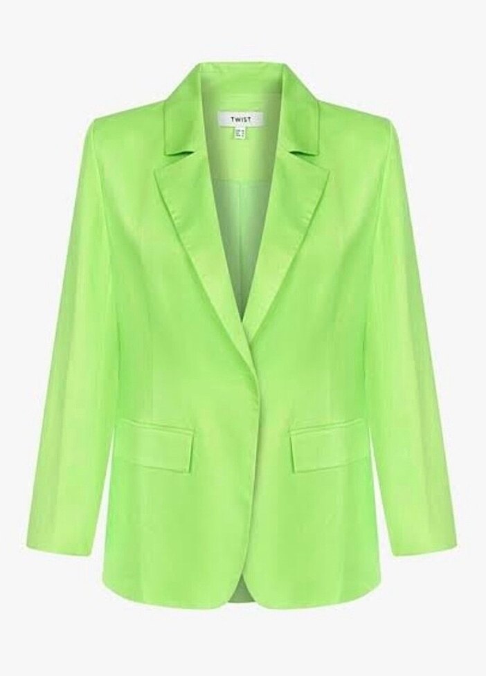 Parlak yeşil renkli, ipeksi kumaştan yapılmış kadın blazer ceket. Notlu yaka, düz kesim, uzun kollu ve midi boydadır. Ofis ve günlük şıklık için uygundur. ✨ üstte duruşu bana ait değildir atamam fotoğraflarda mevcut.