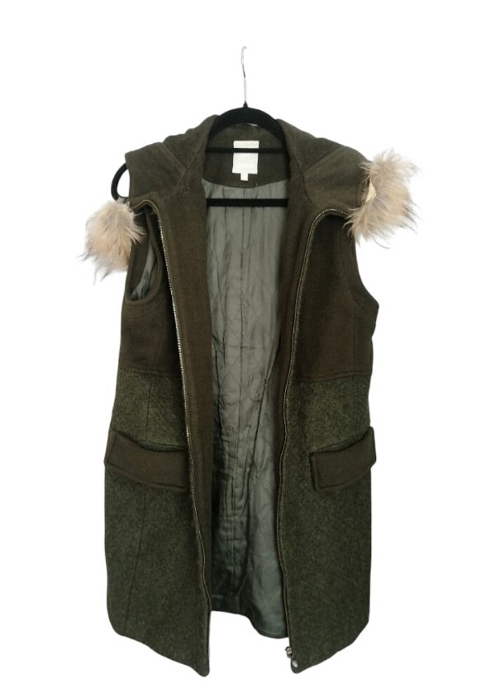 Twist yün yelek KAPŞONLU, kürkü çıkarılabilir, 2 cebi var kalın yün yelek