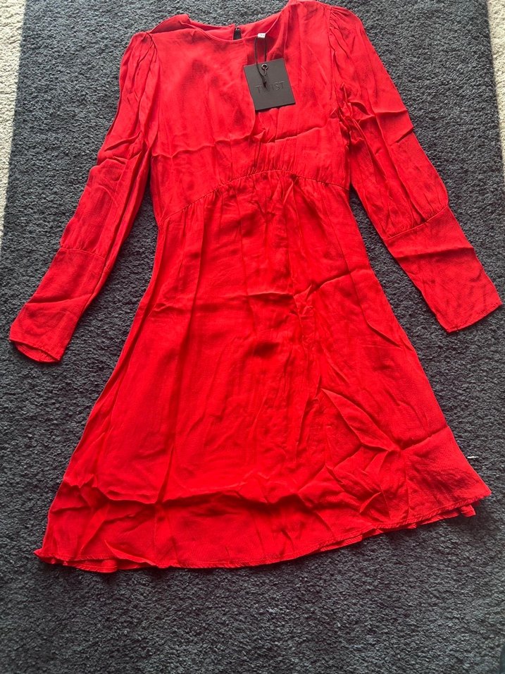TwistUzun Kollu Kırmızı Midi Keten Elbise