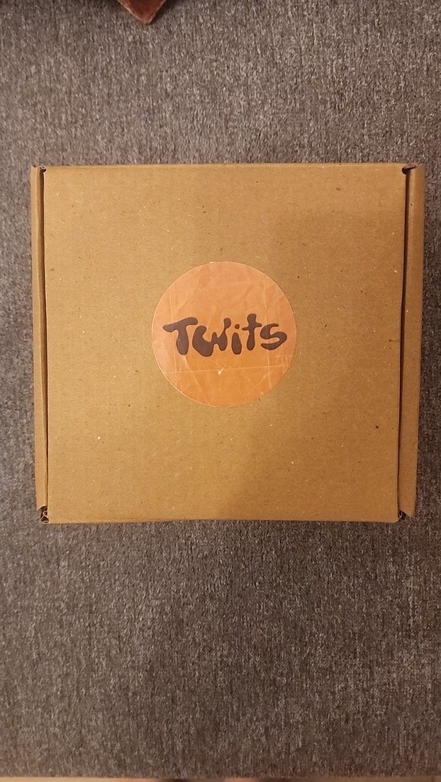 Bej ve gri tonlarda, kağıt malzemeden yapılmış Twits kutulu oyun, genç oyuncular için uygundur.