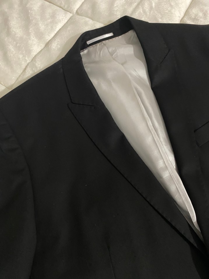 Düğmeli, siyah erkek takım elbise; normal uzunlukta, uzun kollu ve klasik goth tarzında, ofis kullanımı için uygundur sadece bir kez giyilmiştir