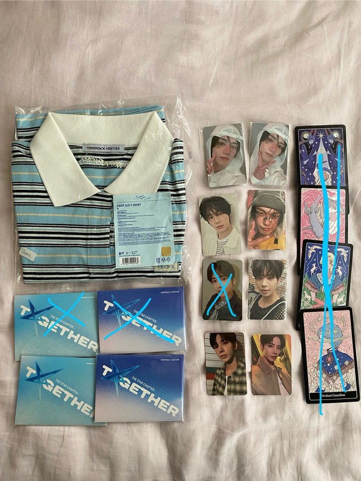 tisort-1500 ilk iki beom pc set-750tl tekli beom pc- 320tl yeonjun- 280tl tekli taehyun-110tl son iki taehyun set-260tl weverse ver album jelatinli set-800tl ilani almayin ve mesaj atin lutfen