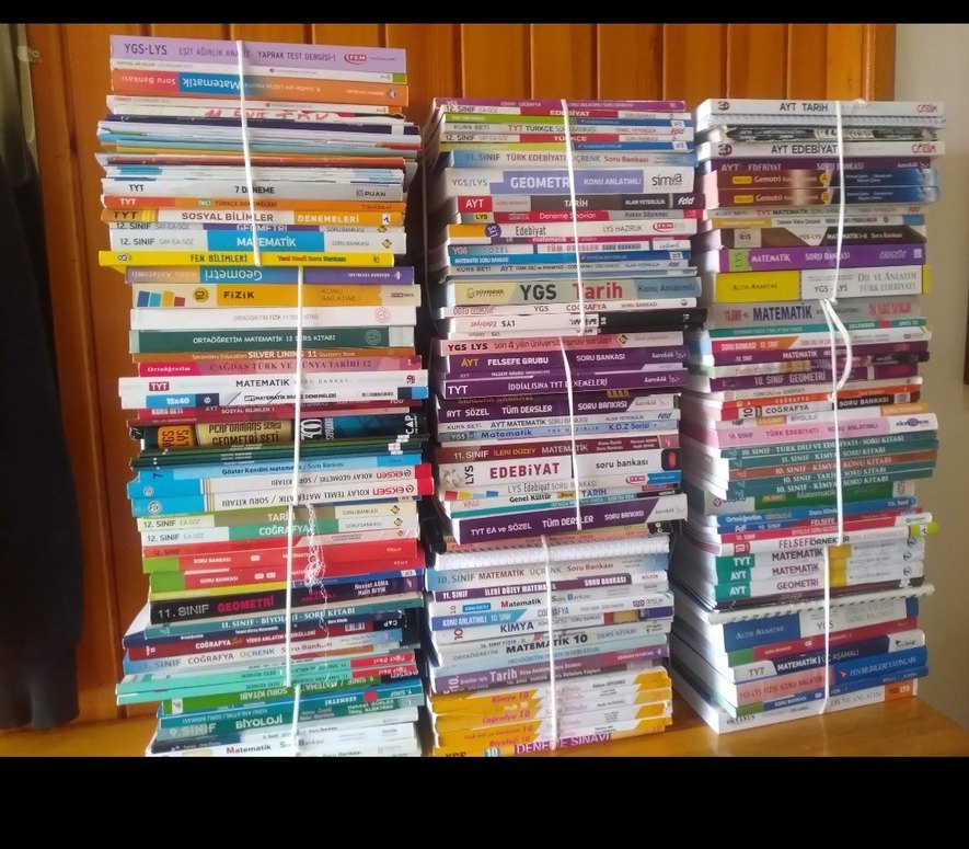 sınavlar için matematik, geometri, edebiyat ve tarih gibi konuları içeren çok sayıda sınav hazırlık kitabı.200 adetin üzerinde,3,4 adedinde 10,15 sayfa çözülmüş,diğerleri orijinal sıfır,hazırlık yardımcı kitaplar.