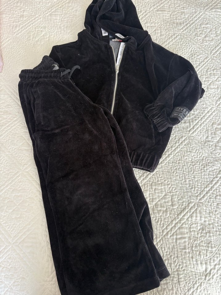 Siyah kapüşonlu fermuarlı sweatshirt ve bol kesim pantolondan oluşan, yumuşak ve sıcak dokulu kız çocuk eşofman takımı. Rahat sokak stili için uygundur. Tyess markasının ürünüdür. Hiçbir problemi olmayan yepyeni bir üründür. #tyess #kızçocukeşofman #kadifeeşofmantakım