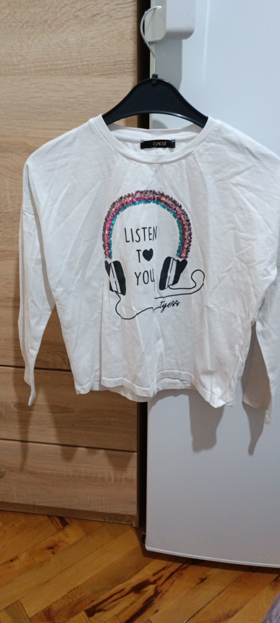Pamuklu kumaştan yapılmış, beyaz renkli, uzun kollu kız çocuk tişörtü. Rahat kesimi ve yuvarlak yakası vardır. Üzerinde renkli kulaklık baskısı ve "LISTEN TO YOU" yazısı bulunur. r
