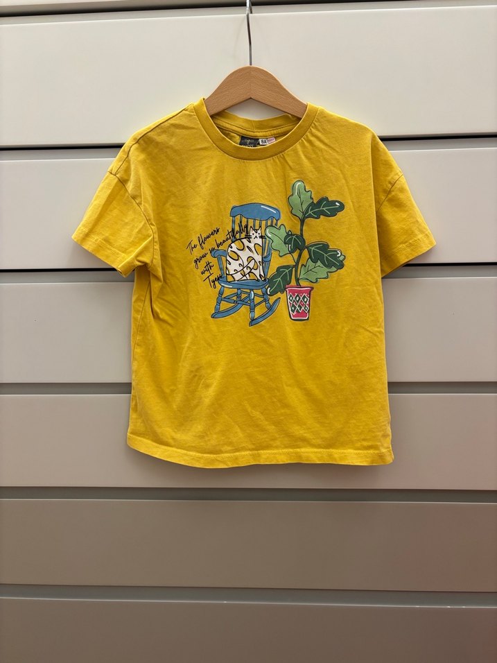 Tyess kız çocuk t-shirt (8 yaş) Kısa kollu, yuvarlak yaka ve bol kesim kız çocuk tişörtü. Pamuklu kumaştan, önünde renkli baskılı desen bulunur.