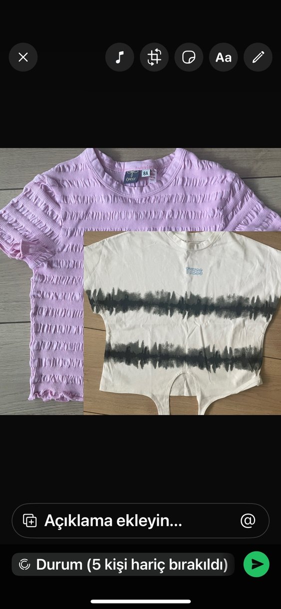Tyess 6 ve 8 yaş, ölçü ve renk resimdeki gibi, ikili ve son fiyattır. beyaz renkli ve siyah batik desenli, kısa kollu, yuvarlak yakalı bol kesim kız tişörtü.