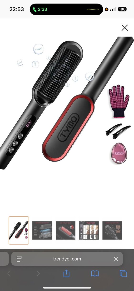 Tymo siyah saç düzleştirici fırça, ayarlanabilir sıcaklık ve ısıya dayanıklı eldiven, saç klipsleri ile birlikte gelir.