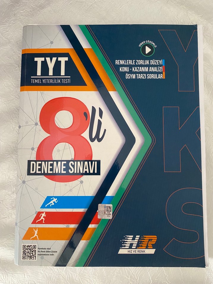 TYT için 8 deneme sınavı içeren kitap, renklerle zorluk seviyesi, konu-kazanım analizi ve ÖSYM tarzı sorular sunar. Hiç kullanmadım