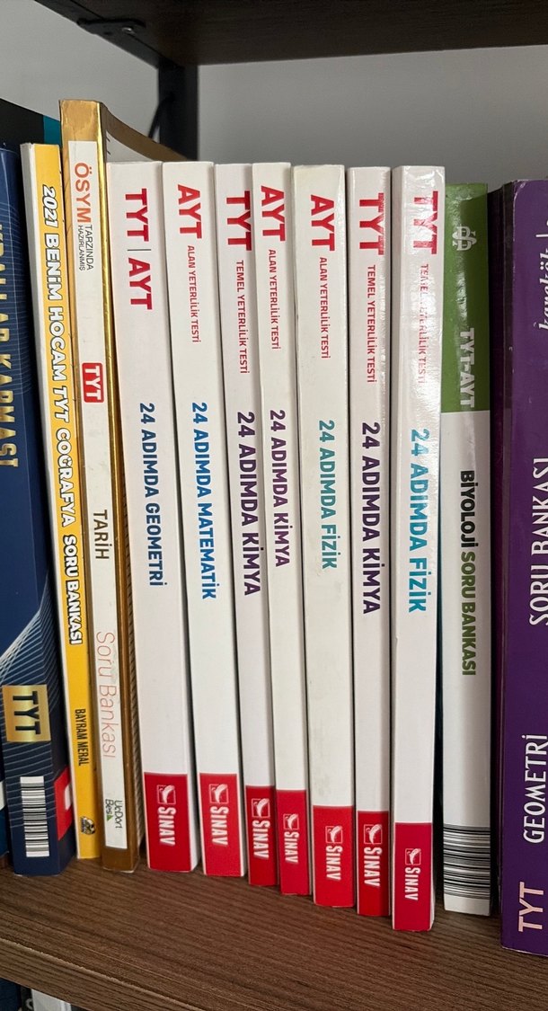 TYT ve AYT için geometri, matematik, kimya, fizik, biyoloji, tarih ve coğrafya konularını içeren 24 adımda soru bankası seti.