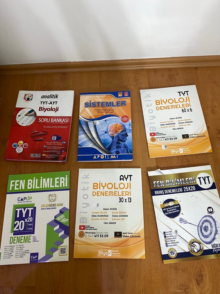 TYT-AYT biyoloji ve fen bilimleri için analitik sorular ve çoklu denemeler içeren soru bankası kitapları. Ürünler hakkında tek tek sorun bilgi vereyim. Toplu alımda indirim yaparım.