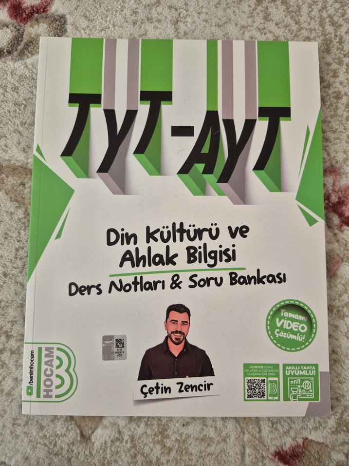 Çetin Zencir'in TYT-AYT Din Kültürü ve Ahlak Bilgisi ders notları ve soru bankası, video çözümleriyle desteklenmiştir. Hiç kullanılmadı, sapasağlam.