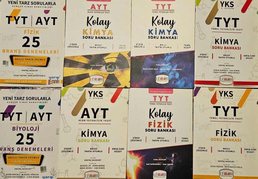 Kullanılmamış yeni, içi tamamen temiz toplam 8 kitap. Set fiyatıdır, tekli alımlarda tanesi 50 ₺. Setin içindeki kitaplar: 1. ayt tyt 25x2 50 fizik deneme 2. ayt tyt 25x2 50 biyoloji deneme 3. ayt kolay kimya soru bankası 4. ayt orta-ileri düzey kimya soru bankası 5. tyt kolay kimya soru bankası 6. tyt kolay fizik soru bankası 7. tyt kimya orta-ileri düzey soru bankası 8. tyt fizik orta-ileri düzey soru bankası
