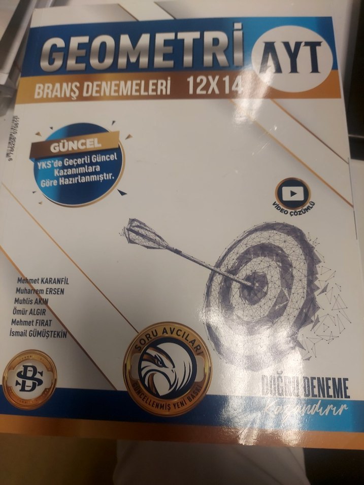 12x14 denemeden oluşan AYT geometri kitabı, güncel YKS kazanımlarına göre hazırlanmış ve video çözümler içerir. Aynı kitap içindedir.14 tyt denemesinin 4 ü cozulü.10 u boş.Ayt 12 si boş.