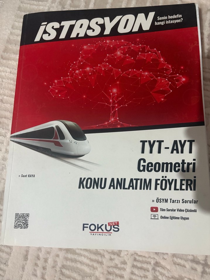 İstasyon kitabı TYT-AYT geometri konularını ÖSYM tarzı sorular ve video çözümleriyle anlatır. Online eğitim desteği de içerir. Bir kaç föyü çözülü