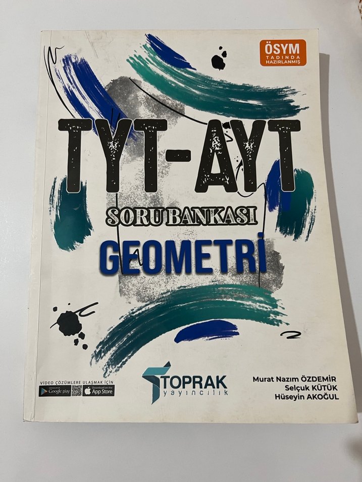 Toprak Yayınları'ndan TYT-AYT Geometri Soru Bankası, sınavlara hazırlık için geniş soru çeşitliliği sunar. Video çözümleri uygulama ile erişilebilir.