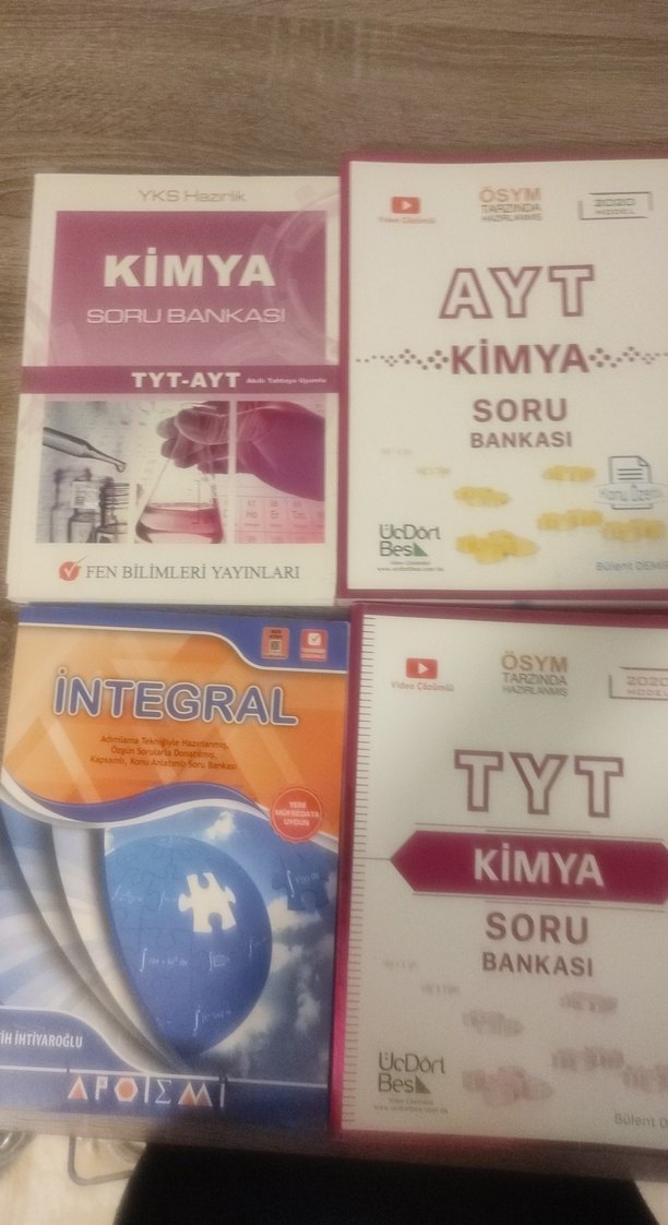 TYT ve AYT Kimya soru bankaları ile İntegral soru kitabından oluşan sınav hazırlık seti.