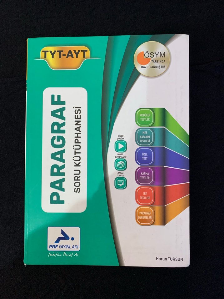 ÖSYM standartlarına uygun hazırlanmış, modül testleri, video çözümleri ve farklı soru tipleri içeren TYT-AYT paragraf soru kütüphanesi. toplam 304 sayfa ilk iki ünite yani 70 syfalık kadar kısım çözülmüş yayıncılığı çok iyi