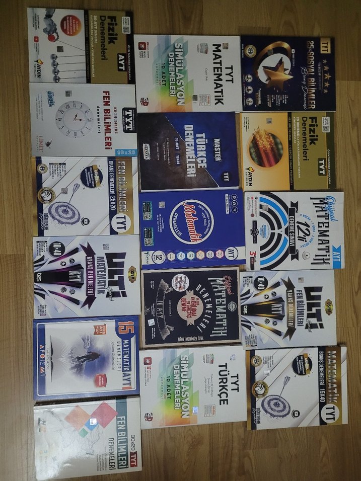 TYT ve AYT sınavları için fizik, Türkçe, matematik ve fen bilimleri konularını içeren deneme kitapları seti. Çok sayıda pratik test ve konu tekrarı içerir.