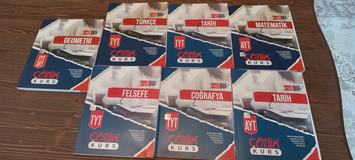 Ürün yeni etiketlidir .Hiç kullanılmamıştır.Türkçe, Matematik, Geometri ,Cografya,Tarih, Felsefe.Toplam 7 kitap .