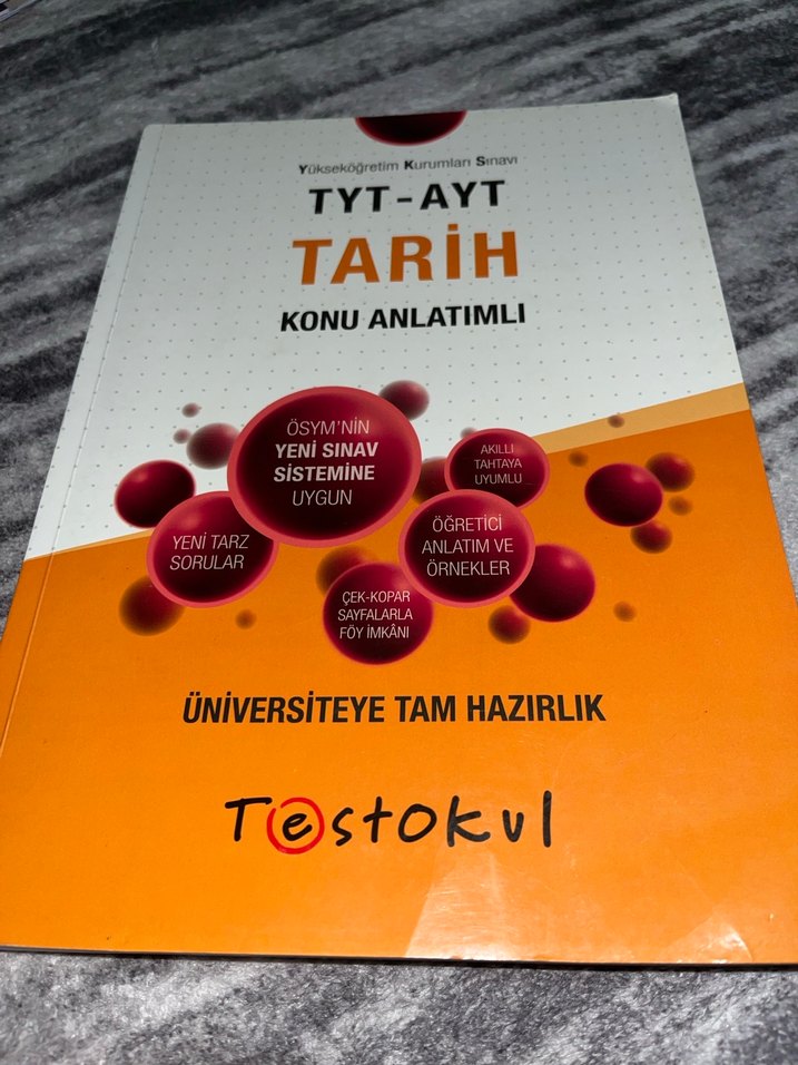Yeni sınav sistemine uygun, öğretici anlatım ve örneklerle tarih konularını içeren konu anlatımlı kitap. ilk 10 sayfa kadar çözülmüp geri kalanı boştur.