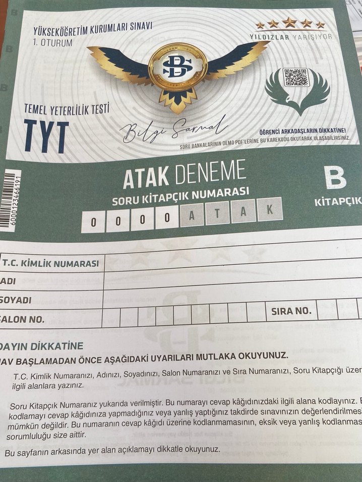 TYT Bilgi Sarmalı Yıldızlar Yarışıyor Deneme Sınavı Kitapçığı