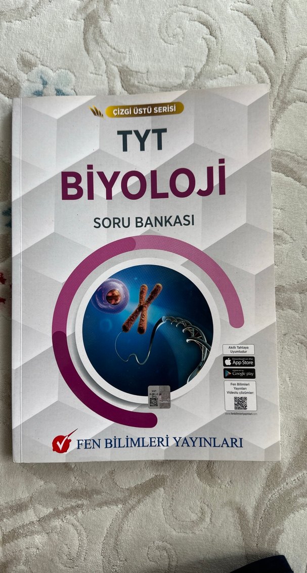 Fen Bilimleri Yayınları'ndan TYT Biyoloji soru bankası, bol pratik sorular içerir. Çizgi Üstü serisindendir ve mobil uygulama desteği vardır. hücreye kadar çözülmüştür yani ilk 42 sayfa geri kalanı boştur