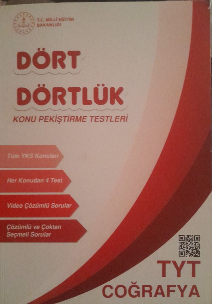 0 kitap TYT Coğrafya için her konudan 4 test, çözümlü ve çoktan seçmeli sorular ile video çözümlü Dört Dörtlük konu pekiştirme testi kitabı.