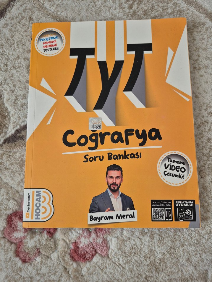 Bayram Meral'in TYT Coğrafya soru bankası, tam video çözümlü ve akıllı tahta uyumlu. Kendini deneme testleri içerir. Hiç kullanılmadı.