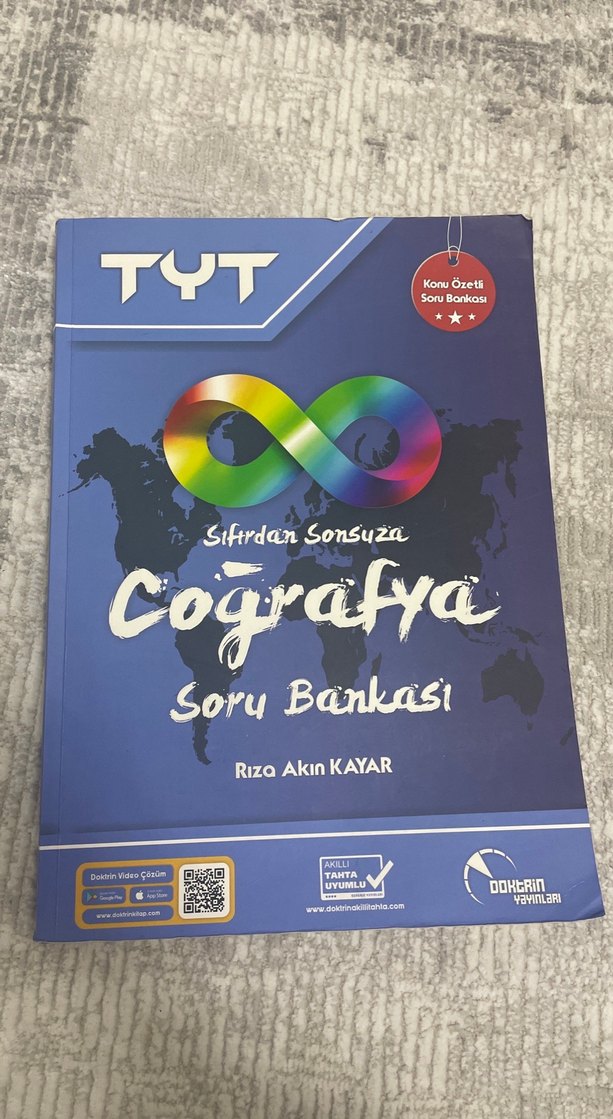 Rıza Akın Kayar'ın yazdığı TYT Coğrafya soru bankası, konu özetleri ve çeşitli soru tipleri içerir. Sadece 10 sayfa çözülü 268 Sayfadan oluşuyor
