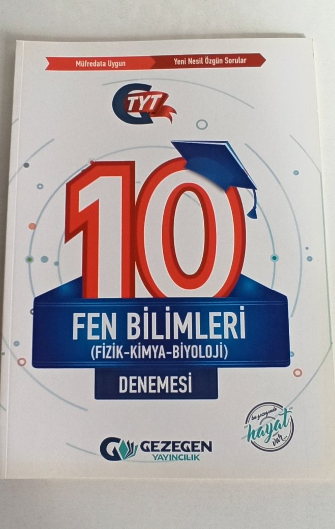 Müfredata uygun Fizik, Kimya ve Biyoloji konularını içeren TYT fen bilimleri denemesi kitabı. Hiç kullanılmadı temizdir
