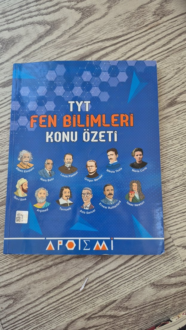 TYT sınavı için fen bilimleri konularını özetleyen, anlaşılır şekilde hazırlanmış bir kitap. Bazı sayfalarında konu ile ilgili notlar vardır