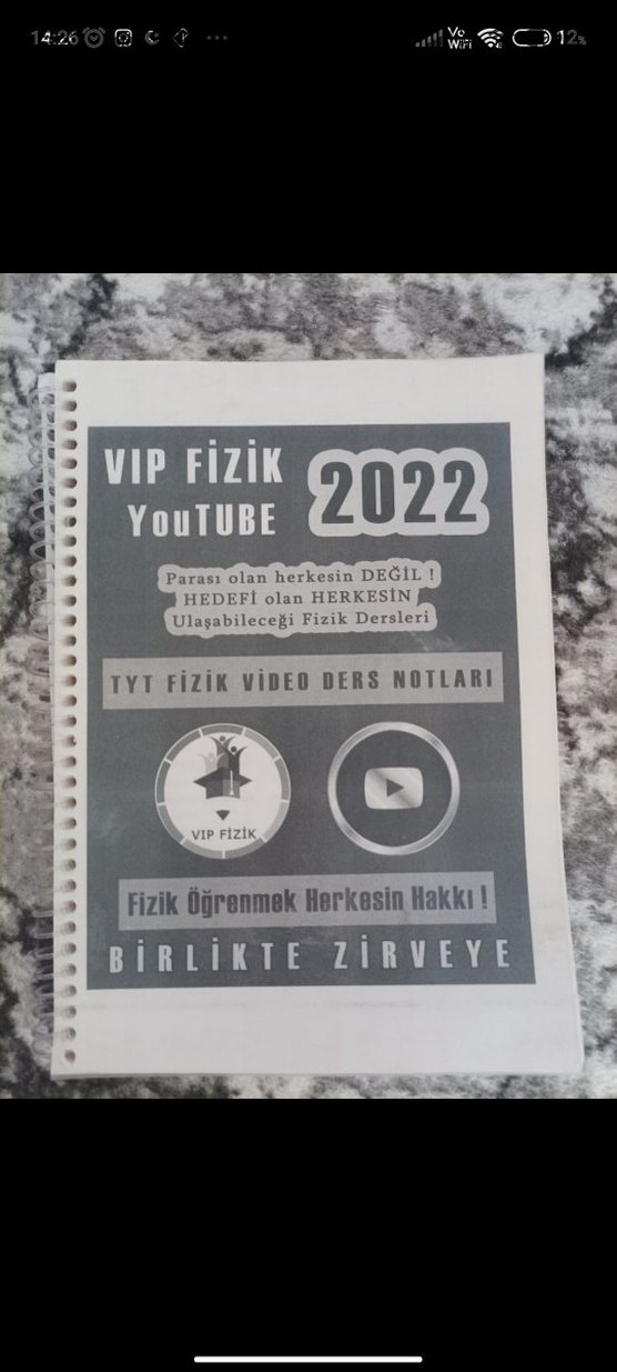2022 VIP Fizik TYT video ders notları, herkesin ulaşabileceği fizik derslerini içerir. Fizik öğrenmek herkesin hakkıdır. Fotoğrafta görüldüğü gibi sadece bir iki sayfa çizilmiş geri kalan sıfırdır. Temiz kullanılmış. Sadece bundan çalışarak tut fizikten 10 net yapmıştım.