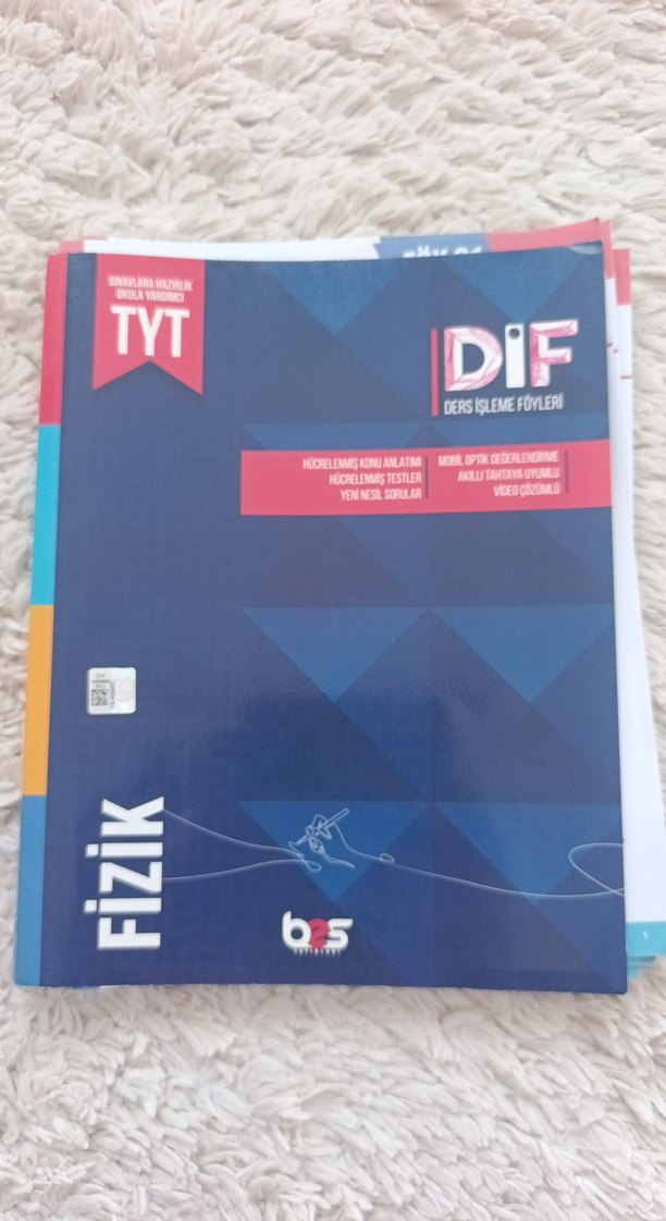 TYT Fizik DİF kitabı, kavramsal anlatım, yeni nesil testler ve video çözümler içerir. Sınav hazırlığında düşünme becerilerini destekler. kitap sıfırdır sadece fotoğraflarini ekledigim yerler çizilmiş onun dışında bı sorun yok