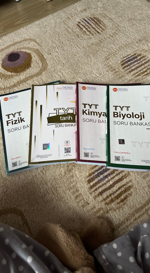 TYT Fizik, Kimya, Biyoloji ve Tarih konularında soru bankaları içeren, sınav hazırlığı için çeşitli alıştırmalar sunan set. Az olan kısım çözülmüş kısım