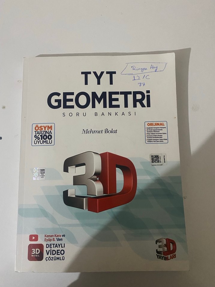 Mehmet Bolat imzalı TYT Geometri soru bankası, detaylı 3D video çözümleri içerir ve ÖSYM sınavına %100 uyumludur.
