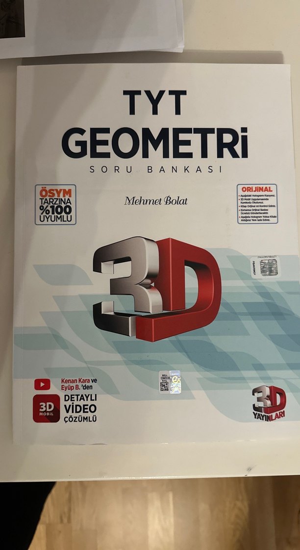 Mehmet Bolat imzalı TYT Geometri soru bankası, OSYM uyumlu ve detaylı 3D video çözümleri ile desteklenmiştir. Hiç kullanılmamış