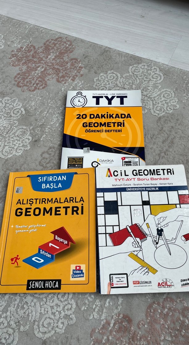TYT geometri soru bankası, 20 dakikada geometri öğrenci defteri ve Şenol Hoca'nın alıştırmalarla geometri kitabı. Temelden ileri seviyeye alıştırmalar ve video çözümler içerir.