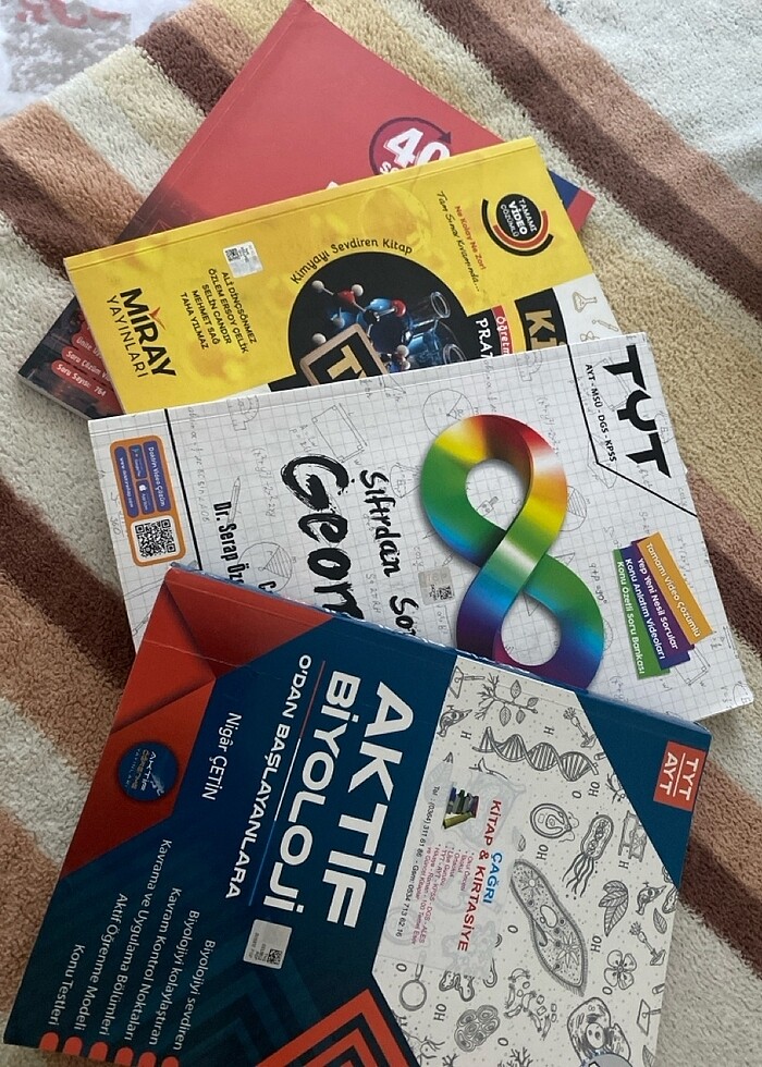 Miray tyt kimya- Yarısı falan boş gerisi silinip yeniden çözebilirsiniz Sıfırdan sonsuza geometri - İlk 10 testi çözülü gerisi boş Aktif biyoloji - İk konulardan çözülü testler var gerisi boş 40seans okyanus tyt kimya - Periyodik sistemlere kadar çözülü gerisi boş hepsi bir 80tl