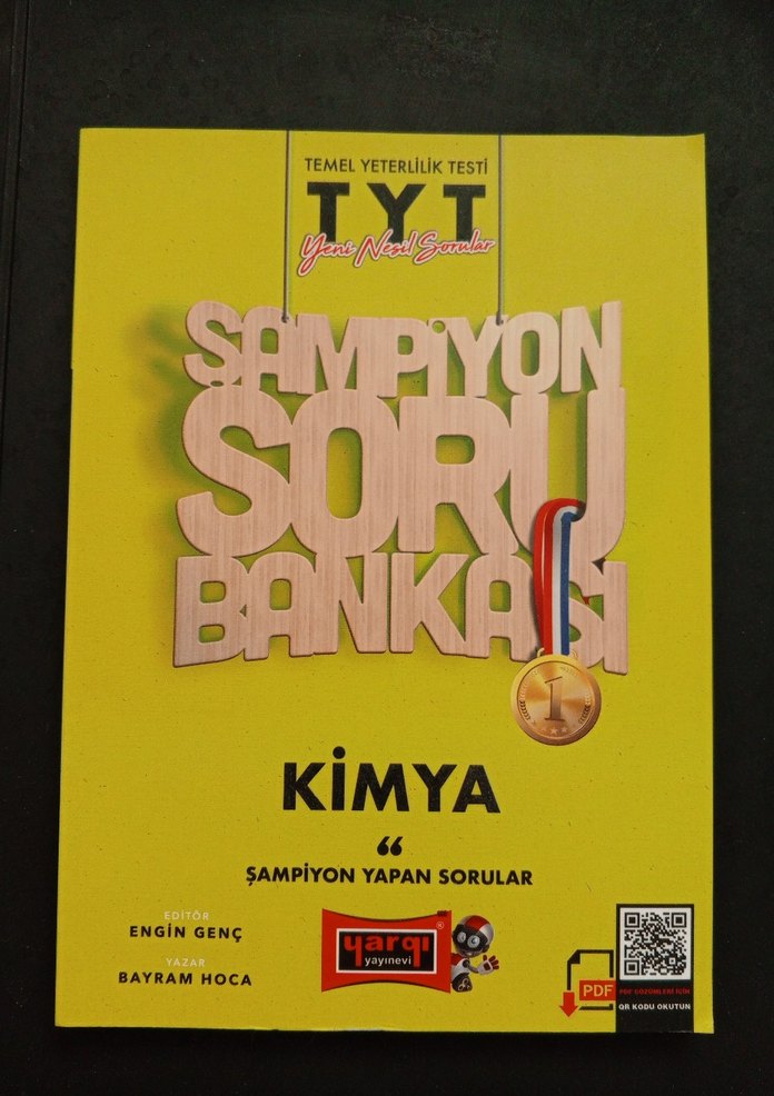 Bayram Hoca tarafından yazılmış, Engin Genç'in editörlüğünde TYT Kimya şampiyon soru bankasıdır. Temel Yeterlilik Testi için hazırlanmıştır. temiz kitap.