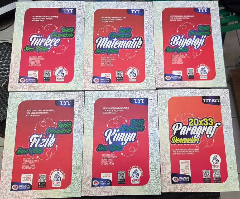 Çözülmemiş karaağaç yayıncılık kitapları. Güncel kitaplar. Tekli alım için mesaj atmanız yeterli. TYT sınavına hazırlık için Matematik, Kimya, Biyoloji ve Deneme kitaplarını içeren ayrıntılı soru ve cevap seti. Video desteklidir.